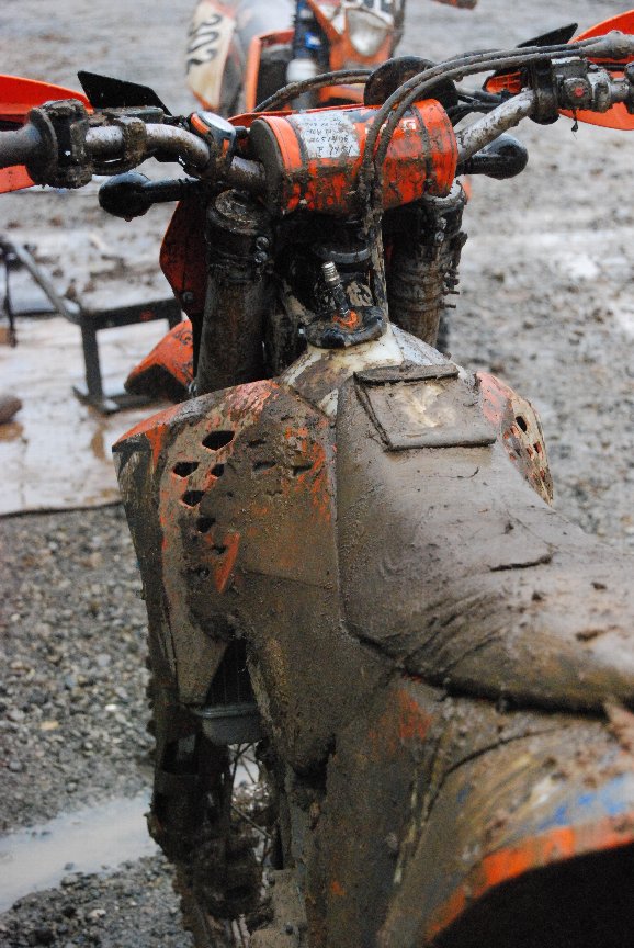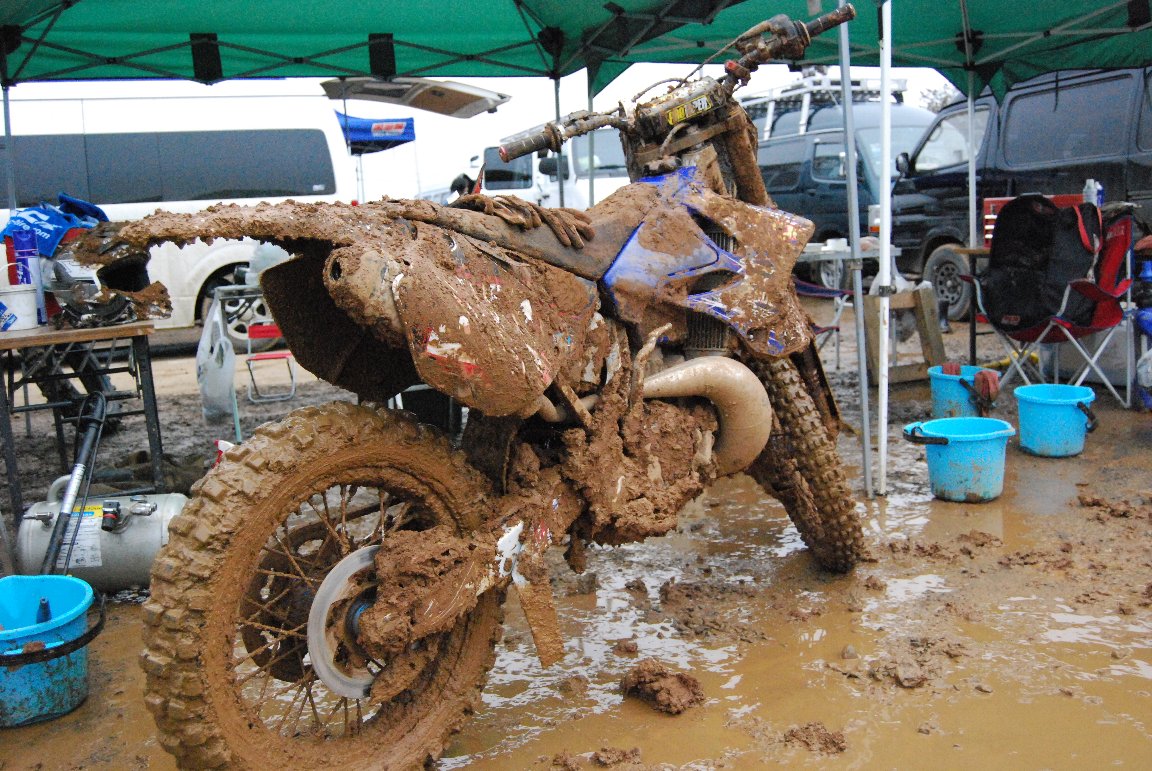 泥が付き重くなった車体の引き起こし、押し上げで体力を消耗し後退。