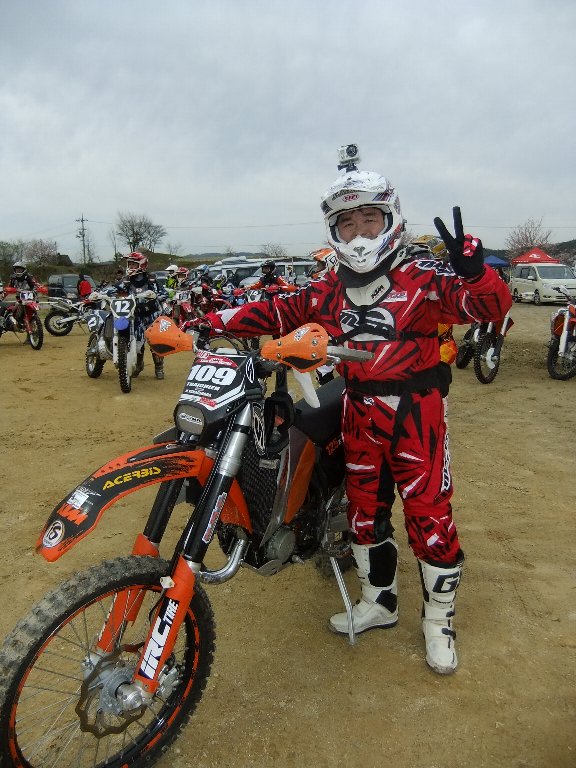 コースはワダチや石が多く、程よく乾いていることもあり全体的にスピードが乗る区間が多く、慣れない125㏄でしたが柔らかいコンパウンドのBR99のグリップに助けられて移動区間のガレ場など全く問題なく走りきることが出来ました。