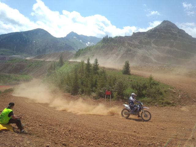 コースは標高差500メートル以上の山頂へ、10数分で一気に駆け上がる為に温度差も大きく、頂上付近は肌寒さも感じる程でした。コースの脇は完全に崖、並大抵の神経ではタイムを出せません。攻めれば攻めるほど死の恐怖を感じるであろう、強烈な予選コース。計測タイムの10秒差内には、100名ほどがひしめいていますから、アクセルを緩めれば一気に50台位から抜かれる計算です、そう思えば簡単にアクセルを戻せません。私も半泣き状態でアクセルを開け続けましたが、それでも全開走行中、一台のイタリアンライダーに抜かれました。ストレートで全開中(140㎞位?)にですよ、どんだけスピード出てるんでしょうか。又、今回ゼッケン1番で臨んだED界のトップスター、デビッド・ナイト。彼は後半のコーナーでコースアウトしてクラッシュ、リタイヤとなりました。後刻、彼のヘルメットカメラを回収したところ、空が2回映っていたそうです。縦に2回転…、その位攻めないと、彼らでもトップは取れないのでしょう。
