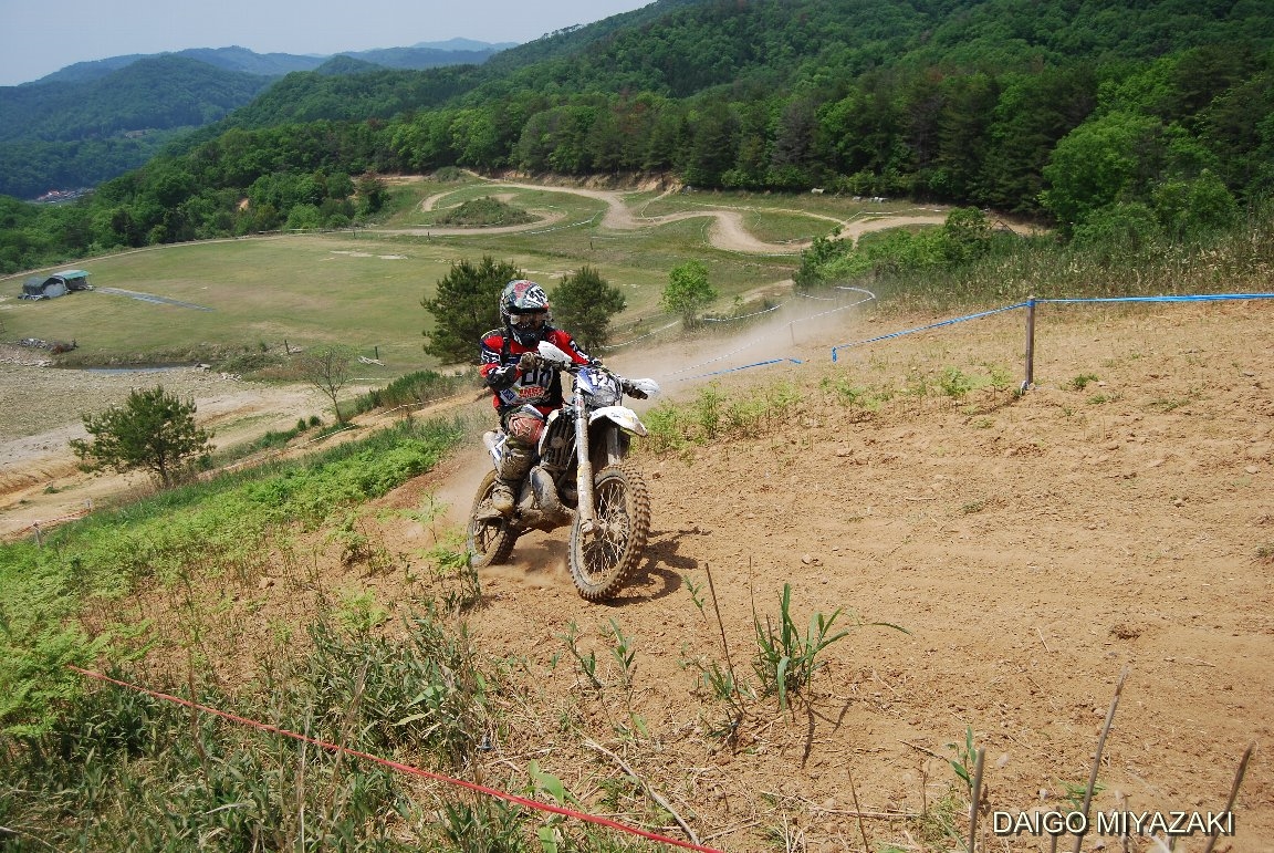 広大な牧草地を利用したコースで、エンデューロレースとしては珍しく高台からコースが見渡せる素晴らしいロケーションです。