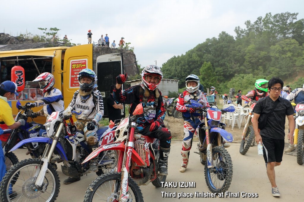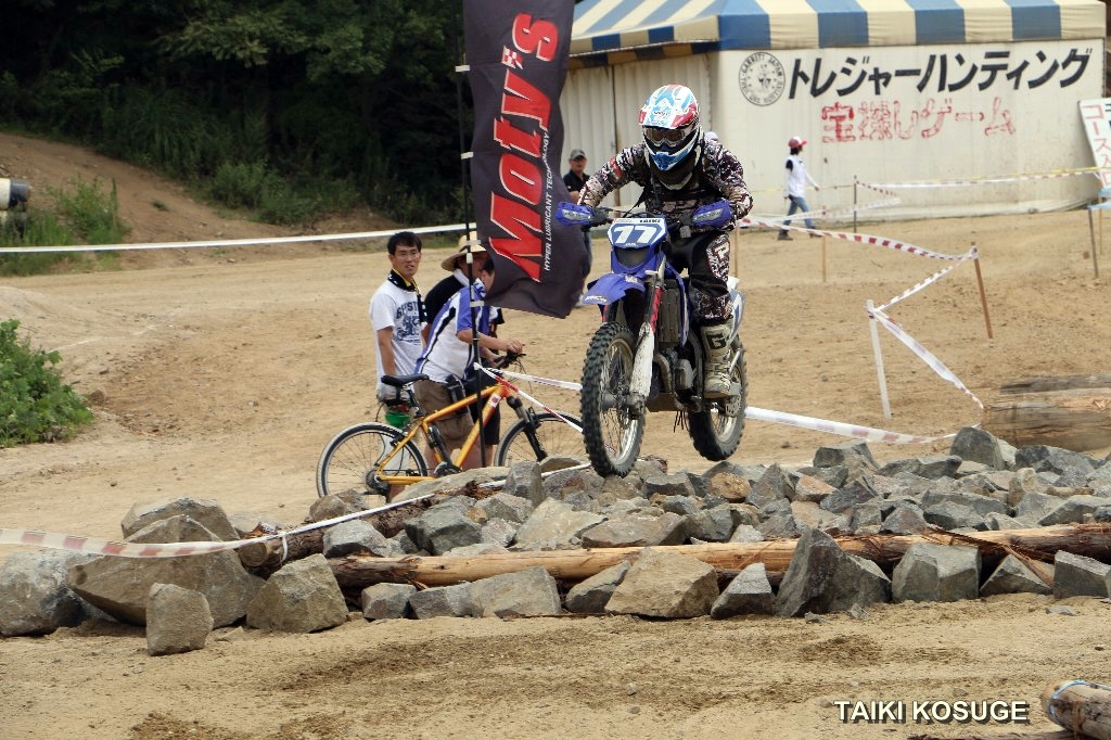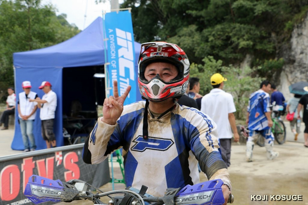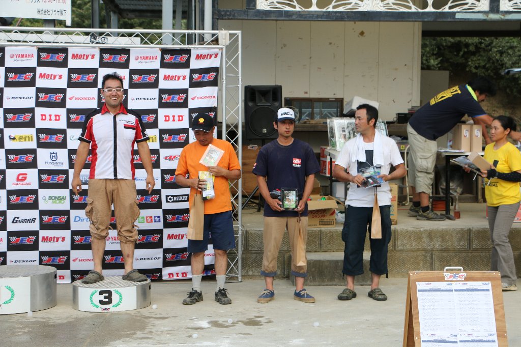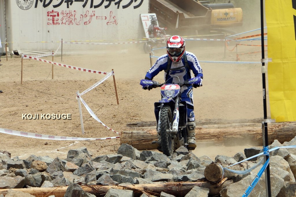 和泉拓選手は開幕戦で痛めた膝靱帯が完治しないままの参戦。1周目の丸太越えで激しく転倒、その後も転倒の際頭部を岩に強打したものの競技継続。ファイナルクロスではスタートに成功し、暫く2位をキープしていましたが鈴木健二選手に抜かれ3位でフィニッシュ。圧倒的に不利かと思われたTR-011ツーリストでのファイナルクロス3位には驚きました。転倒などによるタイムロスなどもあり最終的に10位という結果となりました。