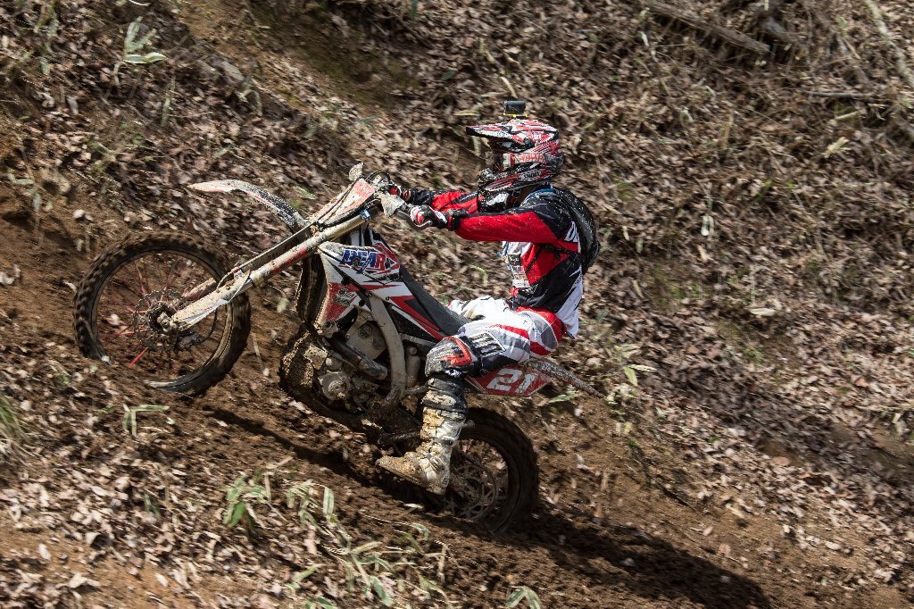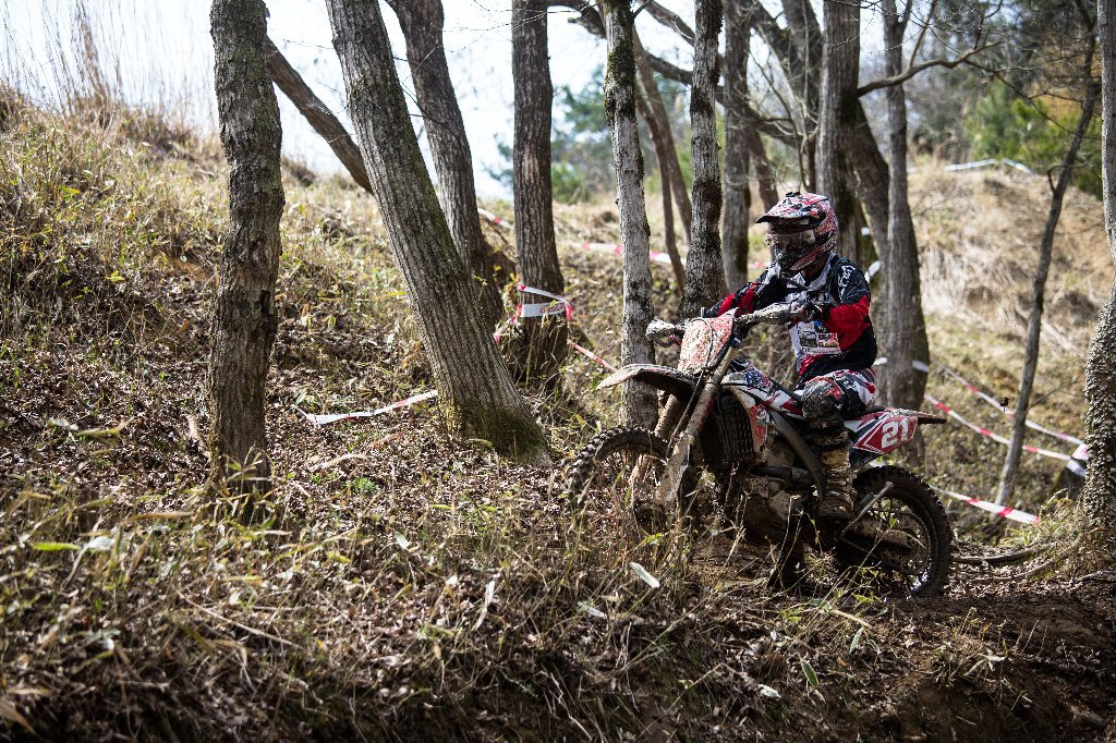 開幕戦はマシンをメンテできていなくて、クラッチが切れず、満足に走れず終わってしまった。今回は、しっかり準備もできていたので、まぁまぁの成績です。昨年総合4位でしたから、最高ではないんですが。僕は雨が得意ですし、この広島で雨であれば、AA1で表彰台にのぼれていた自信がありますよ。 レースは、澤木千敏さんらペースの速い人と走れたことで、うまく自分の走りをにつなげていけました。 タイヤに関してですが、レース1週間前にここテージャスランチで、ix-07sとVE33をテストしていますし、本番でもすごくよかったですね。今日のコンディションであれば、ゲコタの必要は無いと感じました。特にVE33は山が高くて全体的に摩耗していくので後半までタレないですし、牧草地や粘土質でのグリップ感は素晴らしい。そもそもずっとVE33で戦ってきていますし、爺ヶ岳以外はVE33しか考えられませんね。お気に入りのタイヤです。